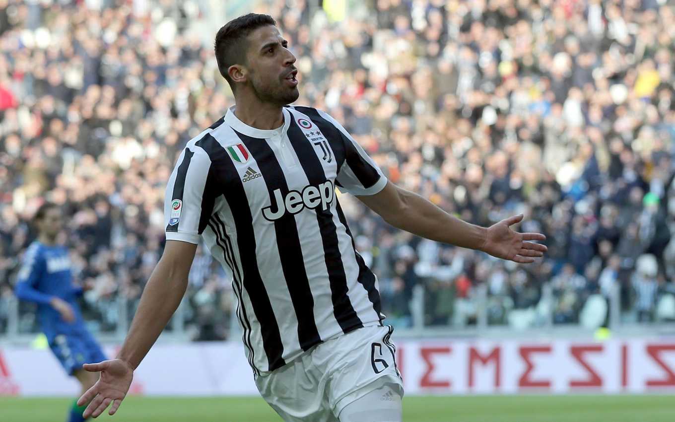 TURIN, ITALY - FEBRUARY 04: Sami Khedira of Juventus celebrates after scoring a goal during the serie A match between Juventus and US Sassuolo on February 4, 2018 in Turin, Italy. (Photo by Gabriele Maltinti/Getty Images)